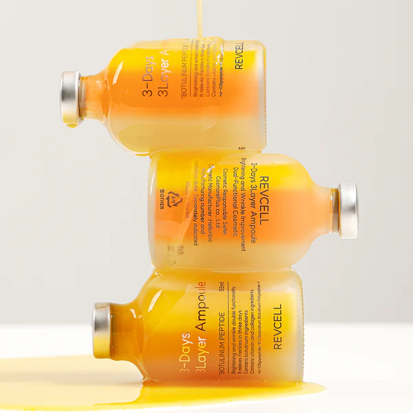 Revcell 三日三層安瓶 是一款創新的三層結構安瓶,能在短短三天內帶來可見改善。使用者反饋顯示:肌膚更加澄澈、色素沉澱減少,並重現透亮光采。安瓶內的 三重階段配方(保濕層、乳液層、油層) 會依序滲透肌膚,發揮最大功效。