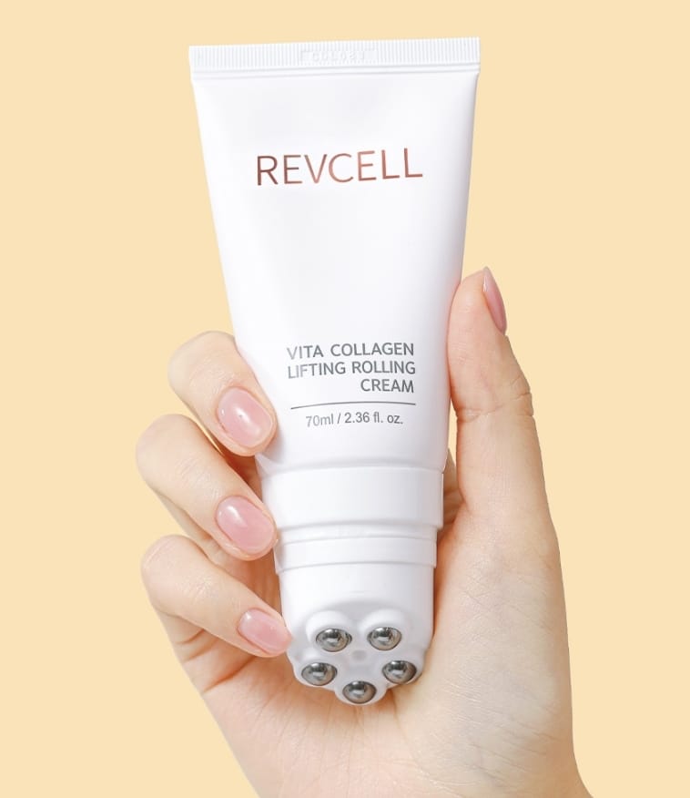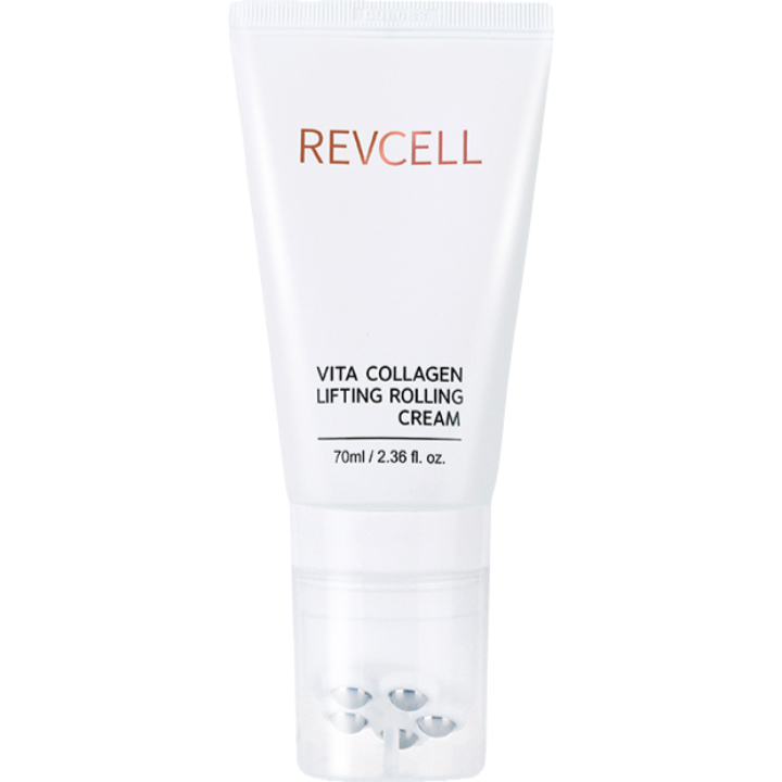 "Revcell 維他命膠原緊緻滾輪霜這款先進的抗老化面霜,透過獨特的內建滾輪設計,能有效緊緻、拉提並煥活肌膚。配方富含 小分子膠原蛋白、菸鹼醯胺、腺苷,以及多重胜肽與植物萃取複合成分,能改善肌膚彈性、淡化細紋,並加強臉部輪廓的立體感。"